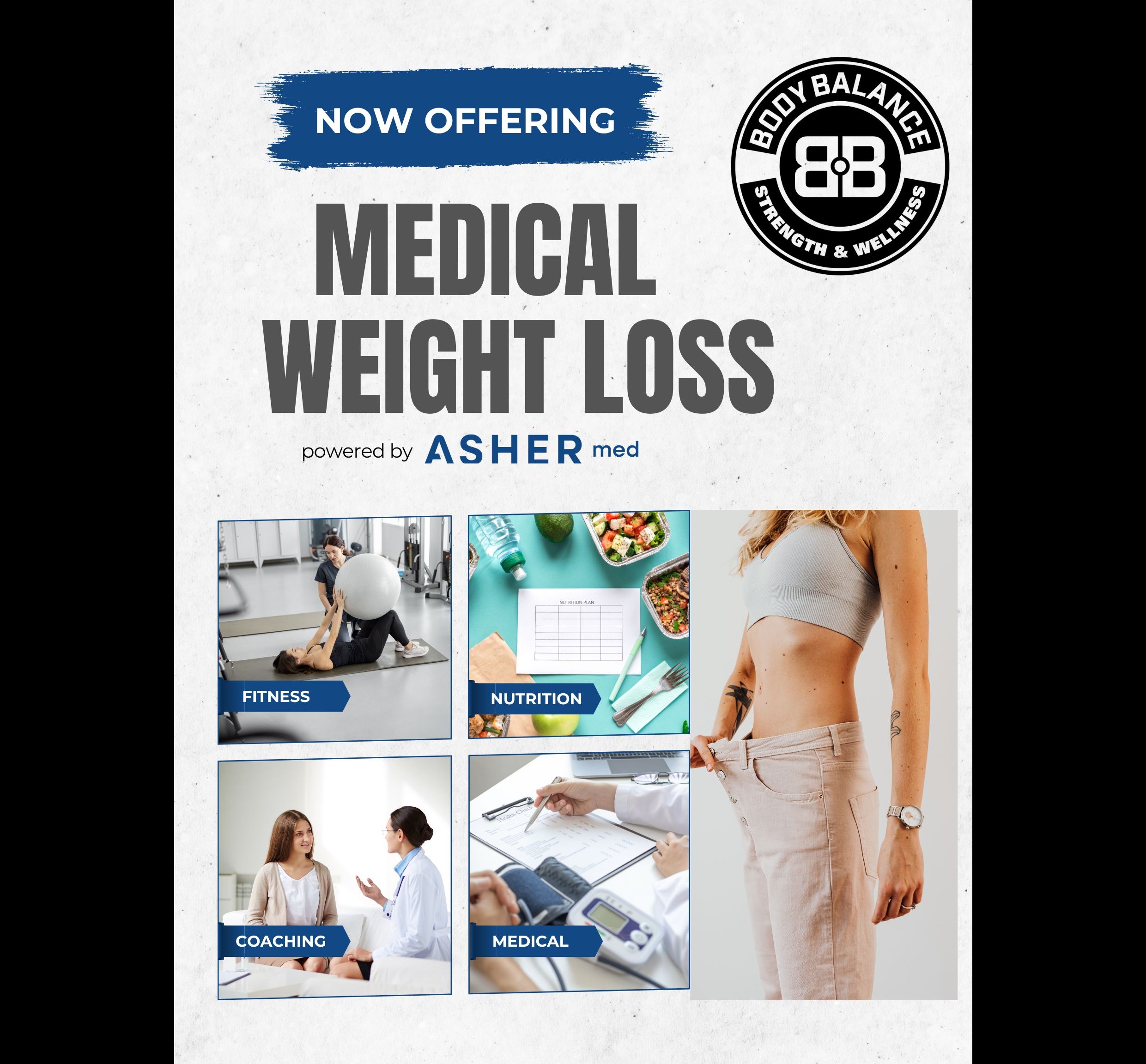 We offer advanced medical wellness services including GLP-1 therapies for weight loss. This program can support fat loss, lean muscle growth and development, tissue repair and regeneration, improved skin quality, enhanced cognitive focus, and overall cellular optimization. By integrating cutting-edge treatment options with expert coaching and care, Body Balance delivers a comprehensive wellness experience designed to help you look, feel, and perform at your best.
