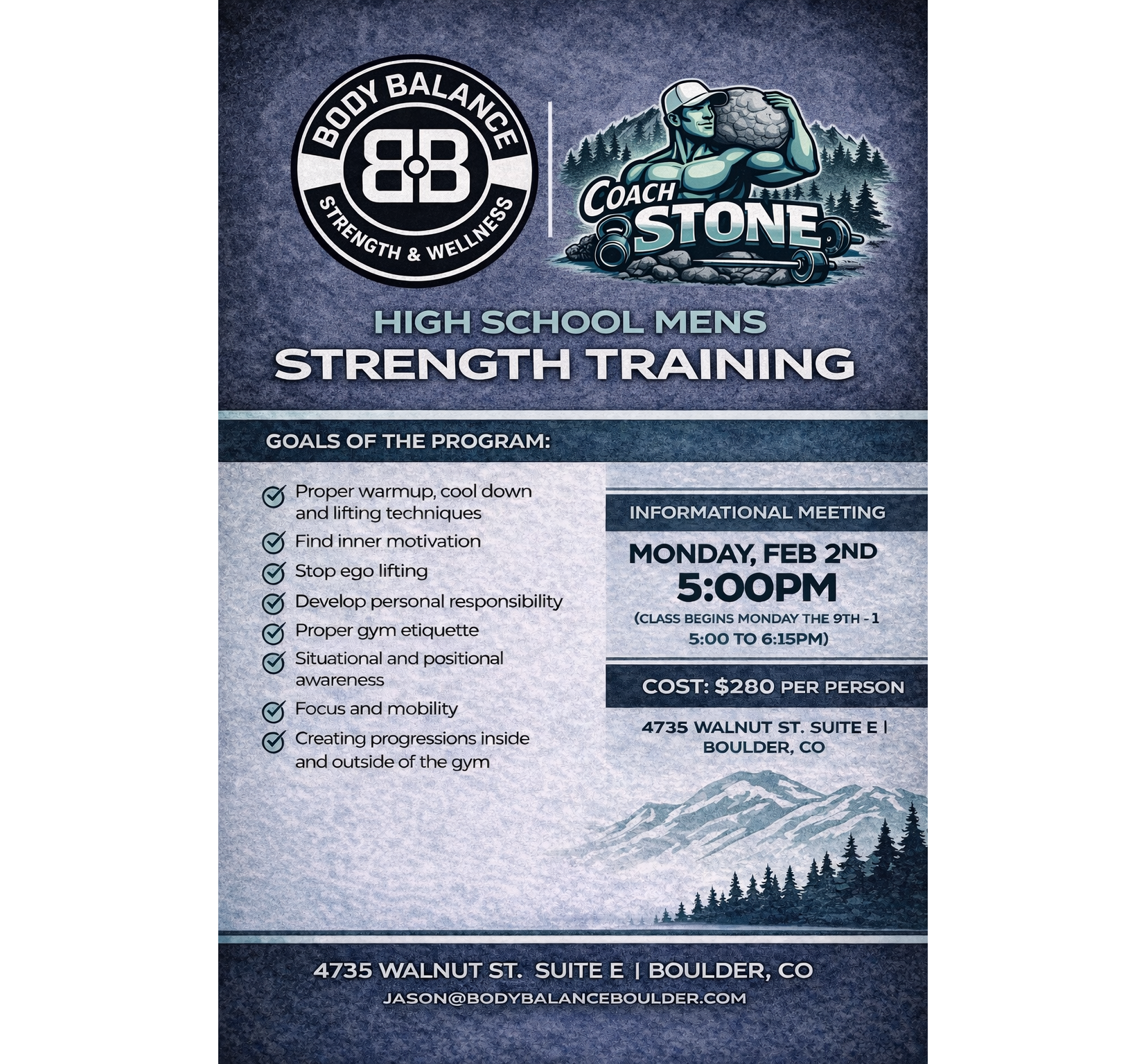 Come join Coach Stone as he guides a group of young men on how to be young men in the gym. He will focus on safe lifting techniques, proper progression, being accountable to others, and much more. Sign up now as space is limited.